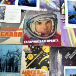 На выставке представлены ноты и грамзаписи песен советских композиторов, посвященных покорению космоса.
